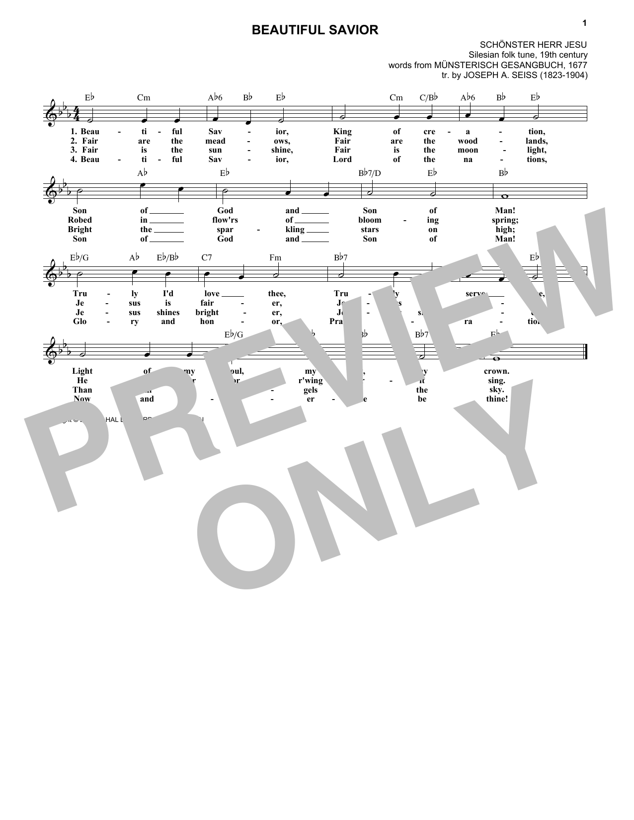 Download or print Joseph A. Seiss Beautiful Savior sheet music, chords and digital score arranged for Easy Piano. This Easter score includes 2 page(s).