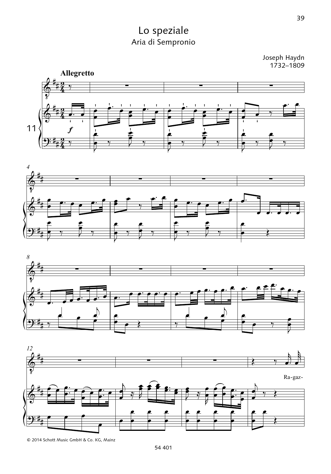 Download or print Joseph Haydn Ragazzaccie, che senza cervello sheet music, chords and digital score arranged for Piano & Vocal. This Classical score includes 6 page(s).