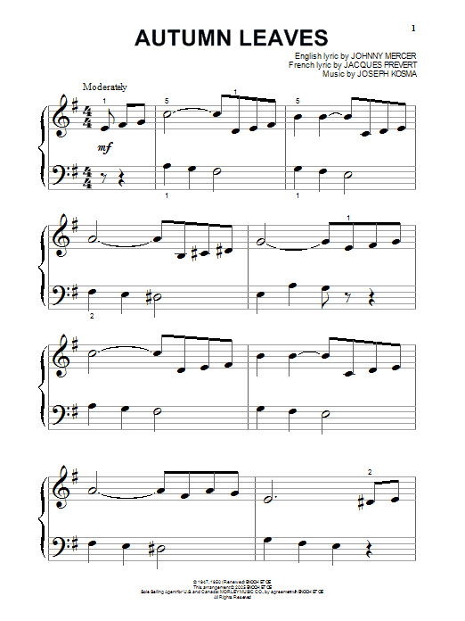 Download or print Joseph Kosma Autumn Leaves sheet music, chords and digital score arranged for Real Book – Melody & Chords – Bb Instruments. This Jazz score includes 1 page(s).