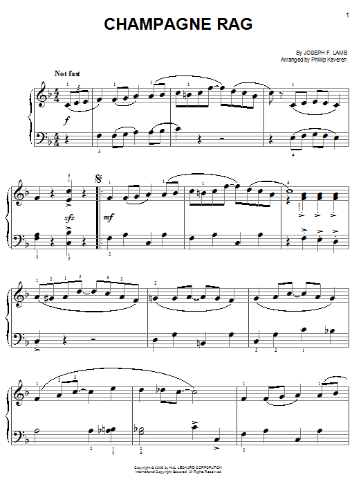 Download or print Joseph Lamb Champagne Rag (arr. Phillip Keveren) sheet music, chords and digital score arranged for Easy Piano. This Holiday score includes 3 page(s).