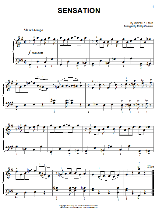 Download or print Joseph Lamb Sensation (arr. Phillip Keveren) sheet music, chords and digital score arranged for Easy Piano. This Jazz score includes 2 page(s).