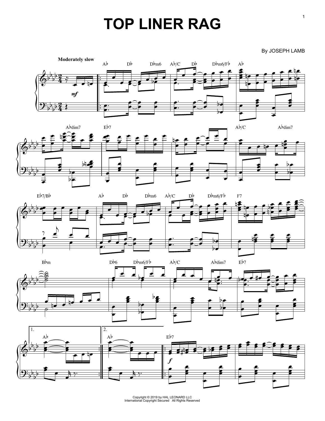 Download or print Joseph Lamb Top Liner Rag [Jazz version] sheet music, chords and digital score arranged for Piano Solo. This Jazz score includes 4 page(s).