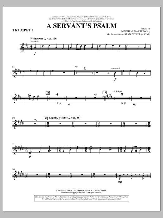 Download or print Joseph M. Martin A Servant's Psalm - Bb Trumpet 1 sheet music, chords and digital score arranged for Choir Instrumental Pak. This Concert score includes 3 page(s).
