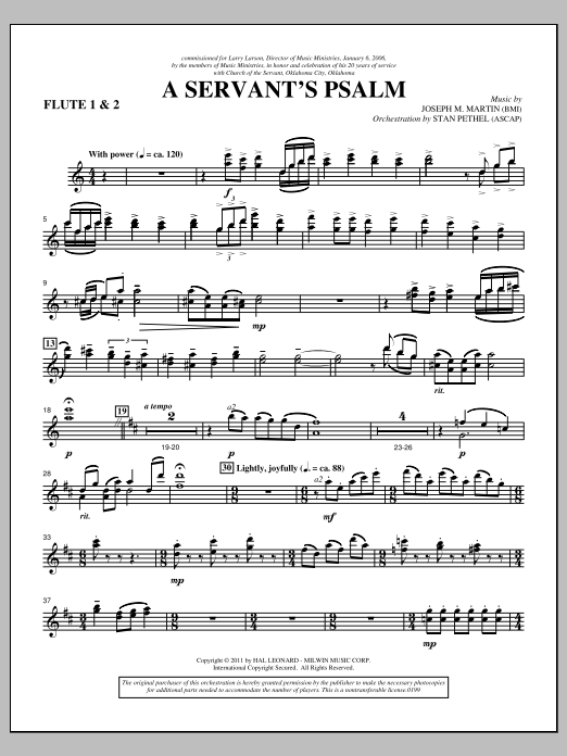 Download or print Joseph M. Martin A Servant's Psalm - Flute 1 & 2 sheet music, chords and digital score arranged for Choir Instrumental Pak. This Concert score includes 3 page(s).
