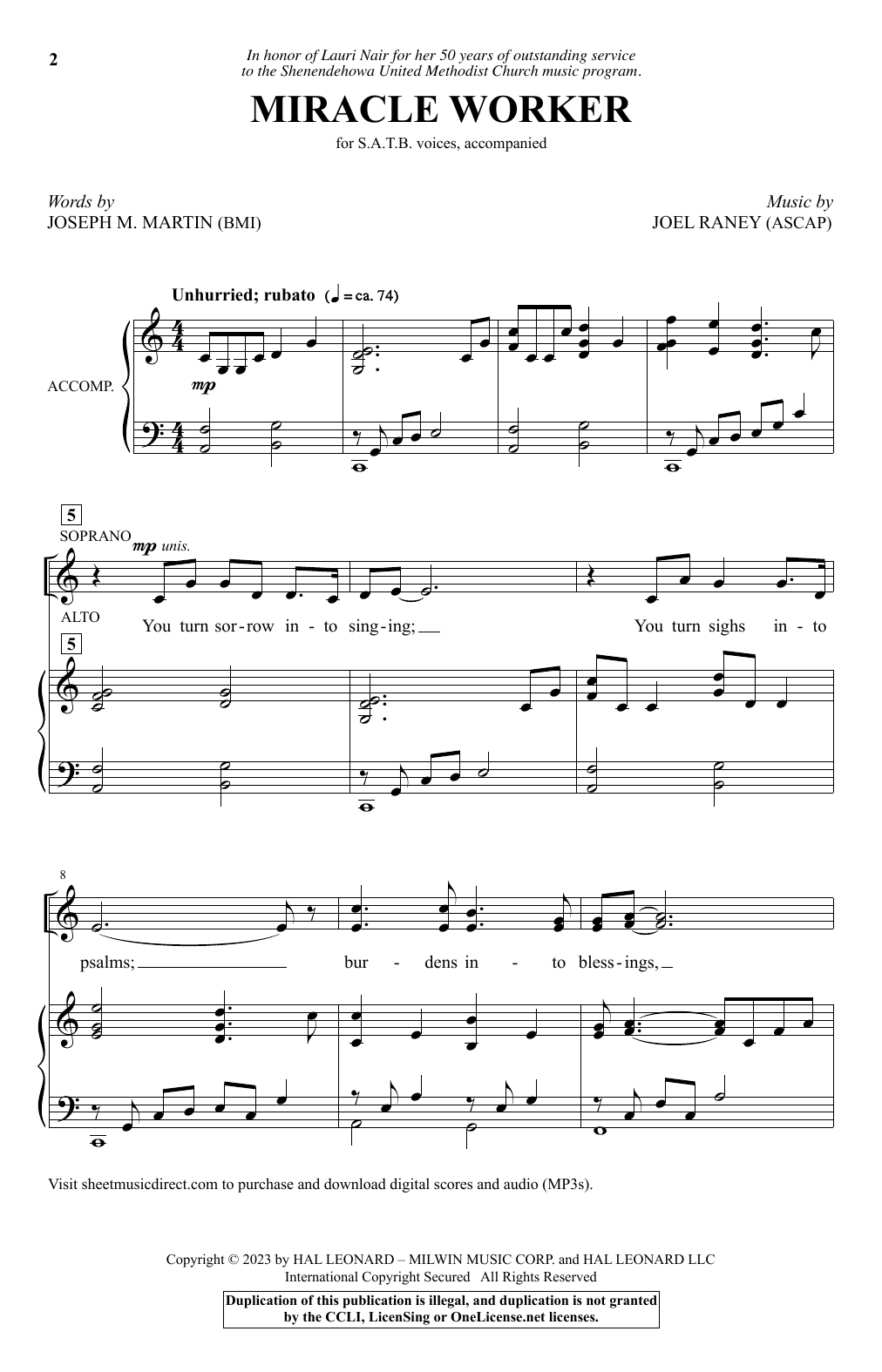 Download or print Joseph M. Martin and Joel Raney Miracle Worker sheet music, chords and digital score arranged for SATB Choir. This Sacred score includes 7 page(s).