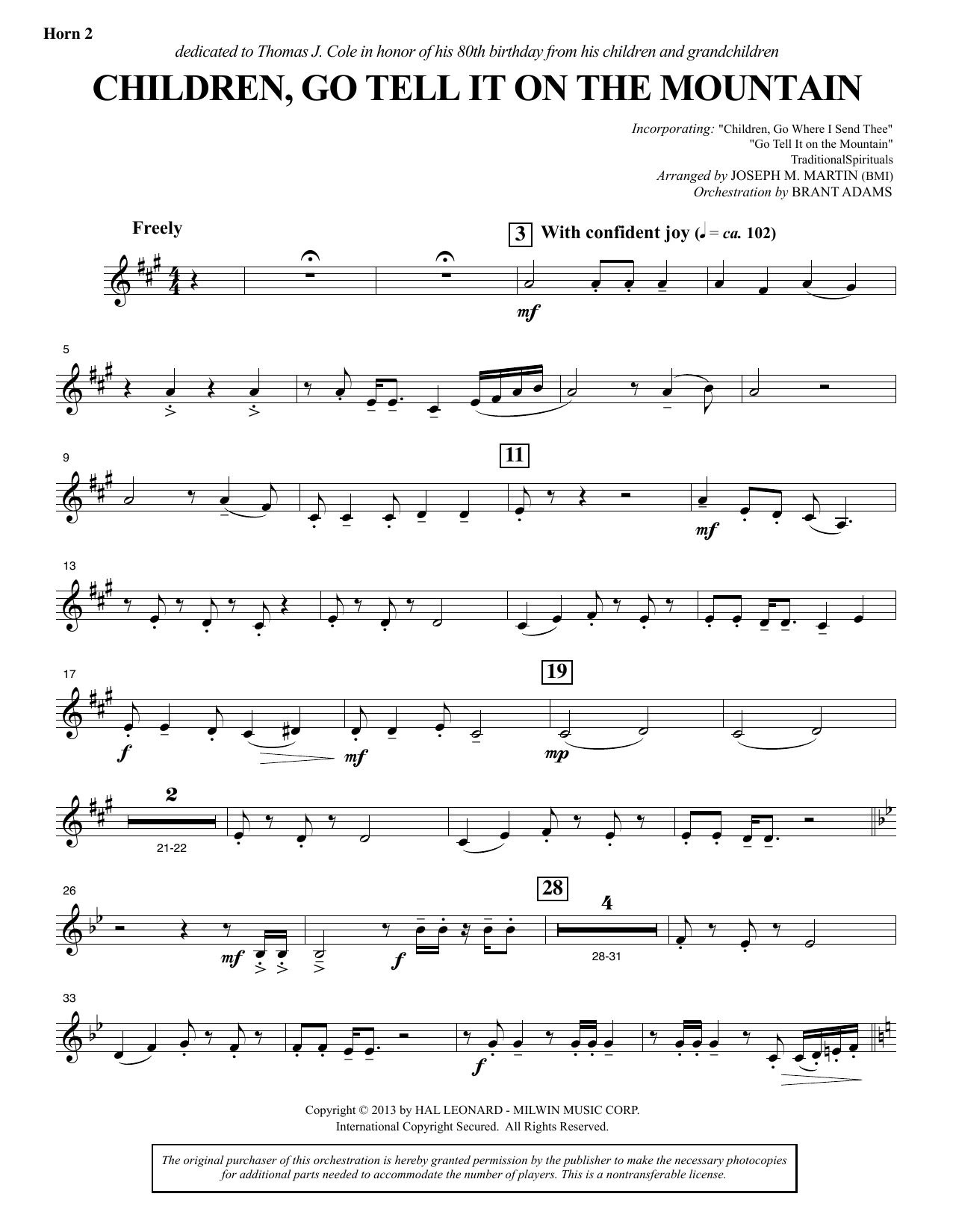 Download or print Joseph M. Martin Children, Go Tell It on the Mountain - F Horn 2 sheet music, chords and digital score arranged for Choir Instrumental Pak. This Concert score includes 2 page(s).