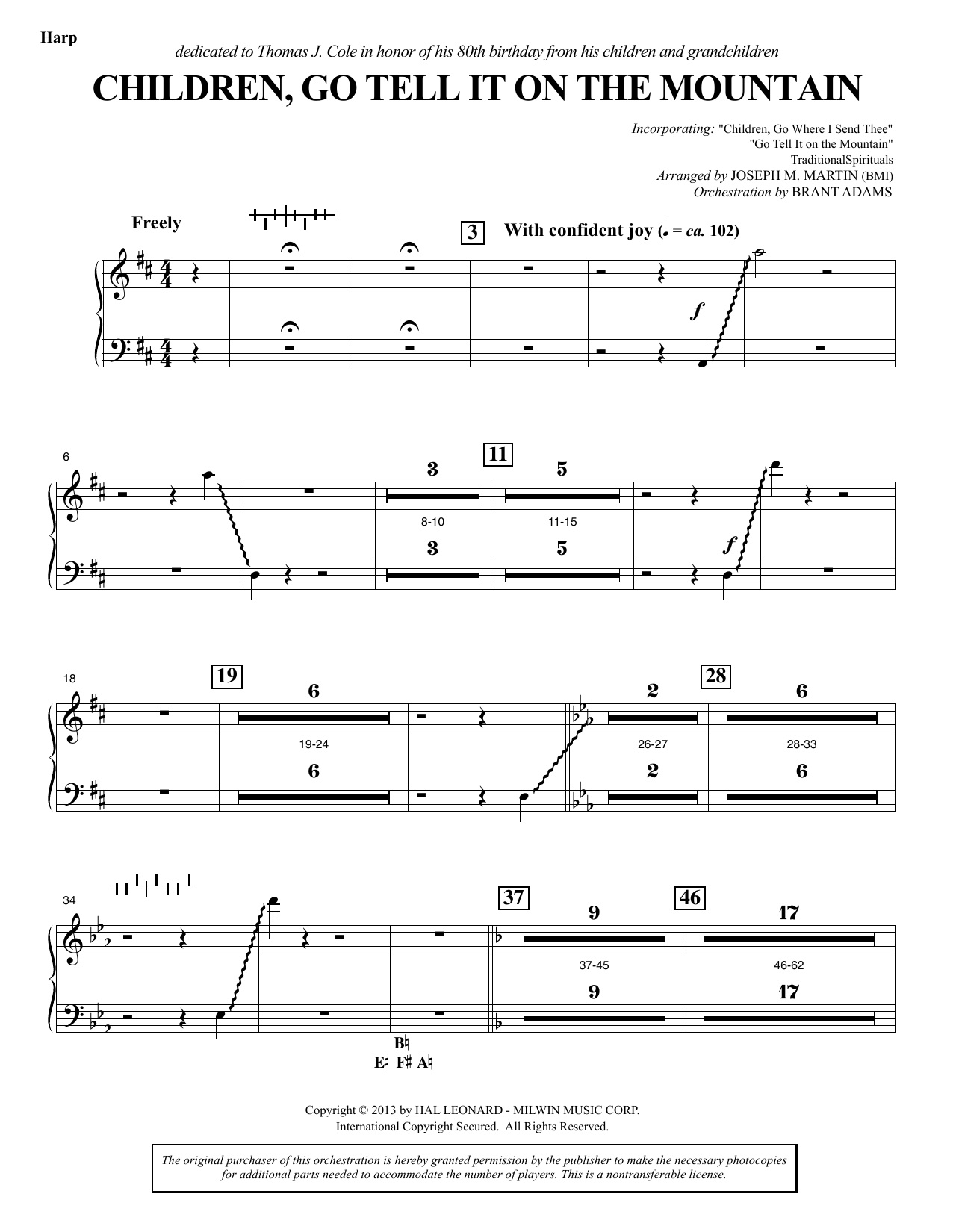 Download or print Joseph M. Martin Children, Go Tell It on the Mountain - Harp sheet music, chords and digital score arranged for Choir Instrumental Pak. This Concert score includes 2 page(s).