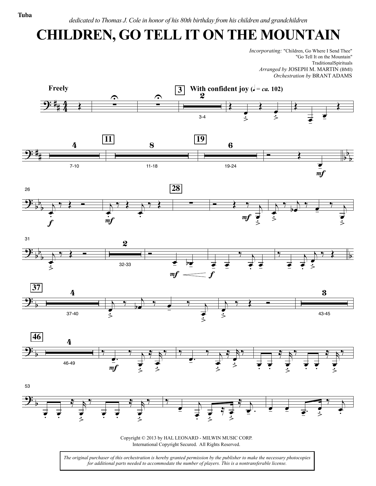 Download or print Joseph M. Martin Children, Go Tell It on the Mountain - Tuba sheet music, chords and digital score arranged for Choir Instrumental Pak. This Concert score includes 2 page(s).
