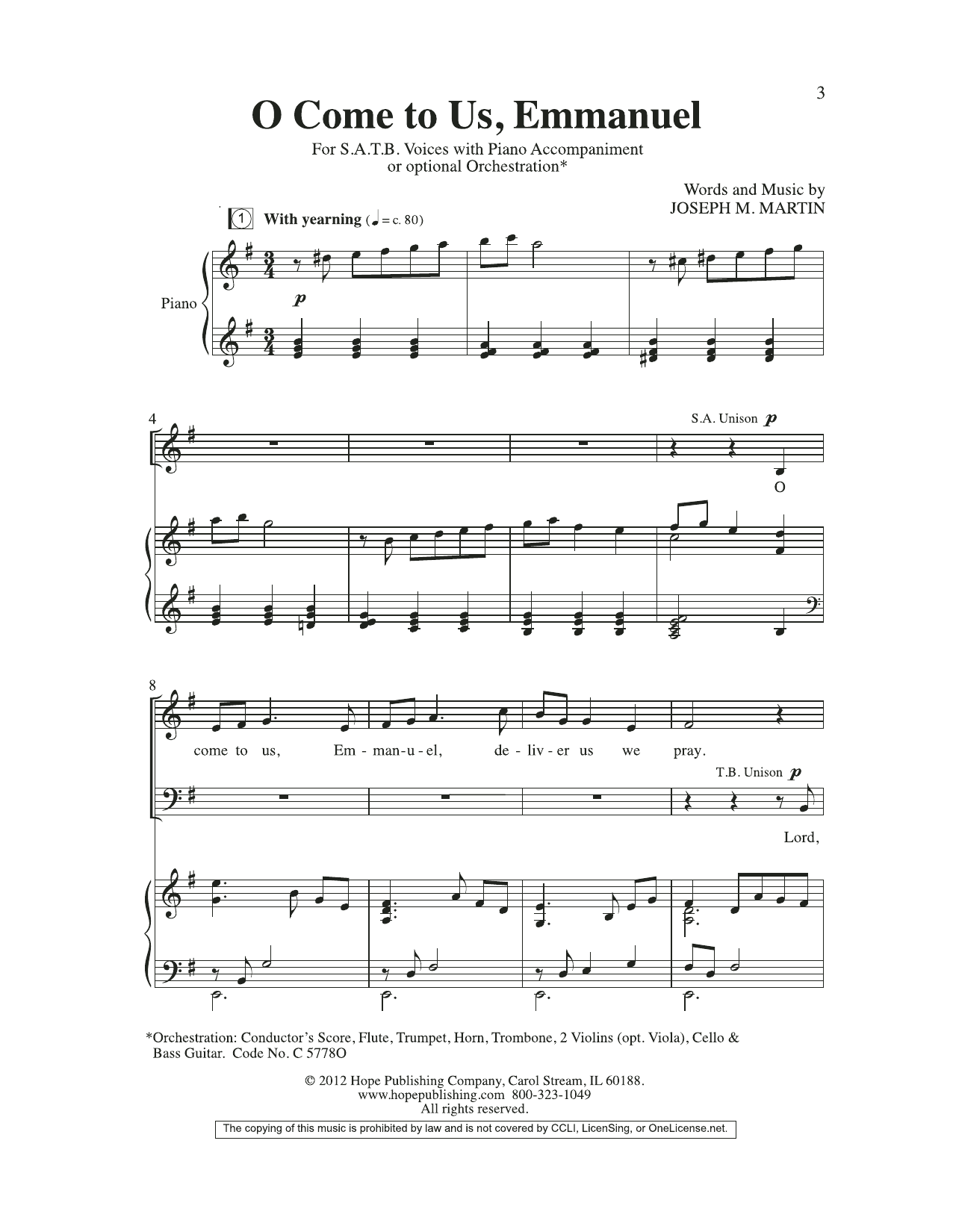 Download or print Joseph M. Martin O Come To Us, Emmanuel sheet music, chords and digital score arranged for SAB Choir. This Sacred score includes 9 page(s).