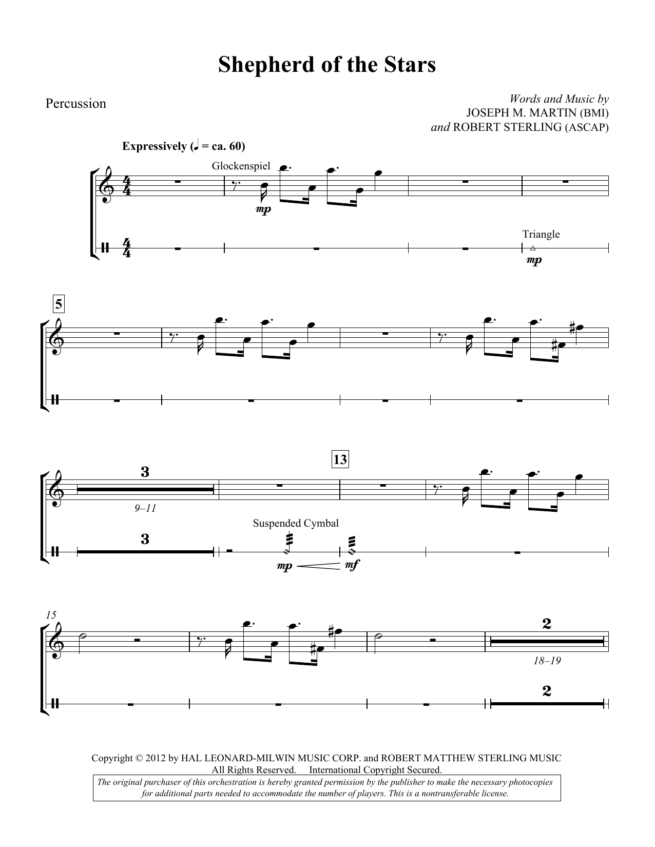 Download or print Joseph M. Martin Shepherd Of The Stars - Percussion sheet music, chords and digital score arranged for Choir Instrumental Pak. This Concert score includes 2 page(s).