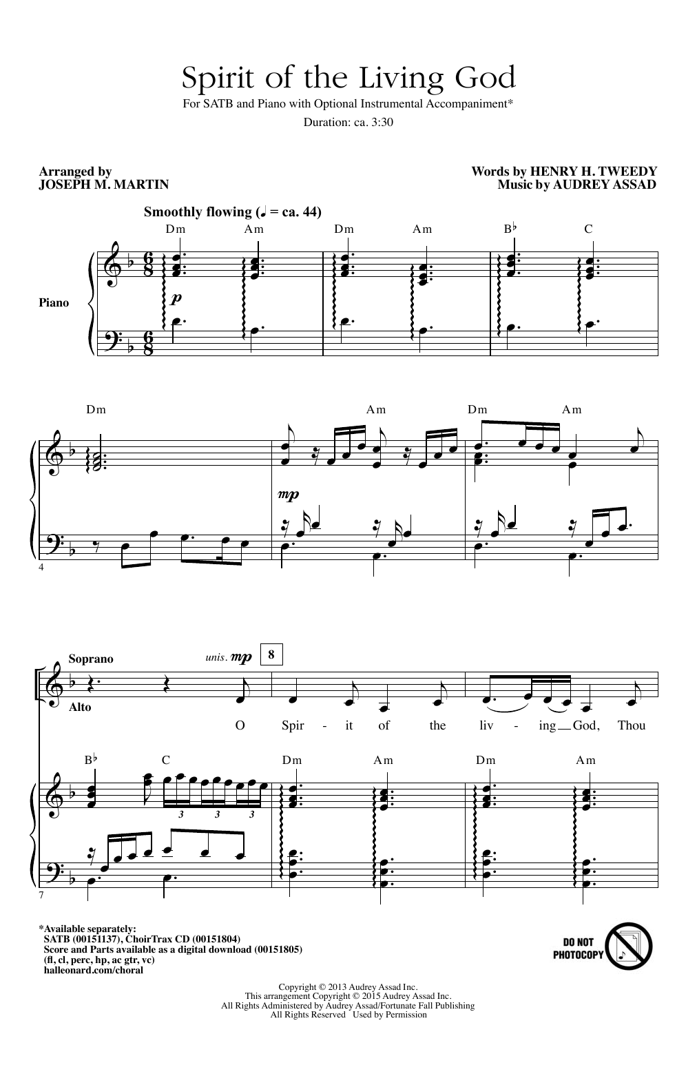 Download or print Joseph M. Martin Spirit Of The Living God sheet music, chords and digital score arranged for SATB Choir. This Sacred score includes 11 page(s).