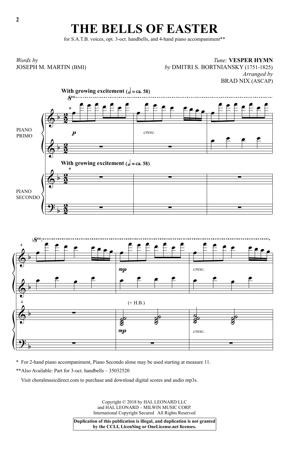 Download or print Joseph M. Martin The Bells Of Easter (arr. Brad Nix) sheet music, chords and digital score arranged for SATB Choir. This Easter score includes 14 page(s).