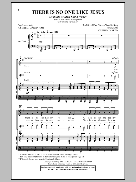 Download or print Joseph M. Martin There's No One Like Jesus (Hakuna Mungu Kama Wewe) sheet music, chords and digital score arranged for 2-Part Choir. This Children score includes 8 page(s).