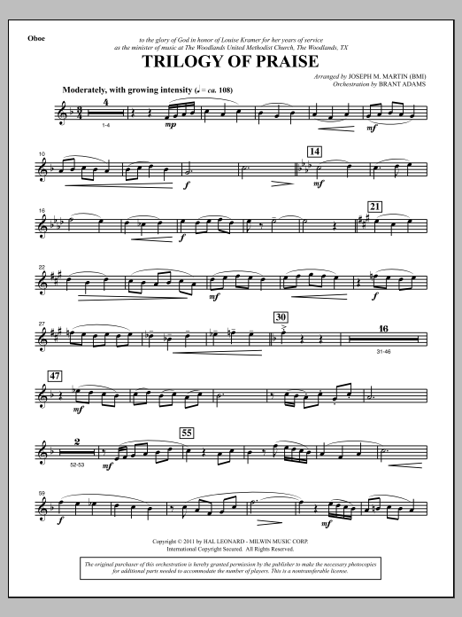 Download or print Joseph M. Martin Trilogy Of Praise - Oboe sheet music, chords and digital score arranged for Choir Instrumental Pak. This Concert score includes 3 page(s).