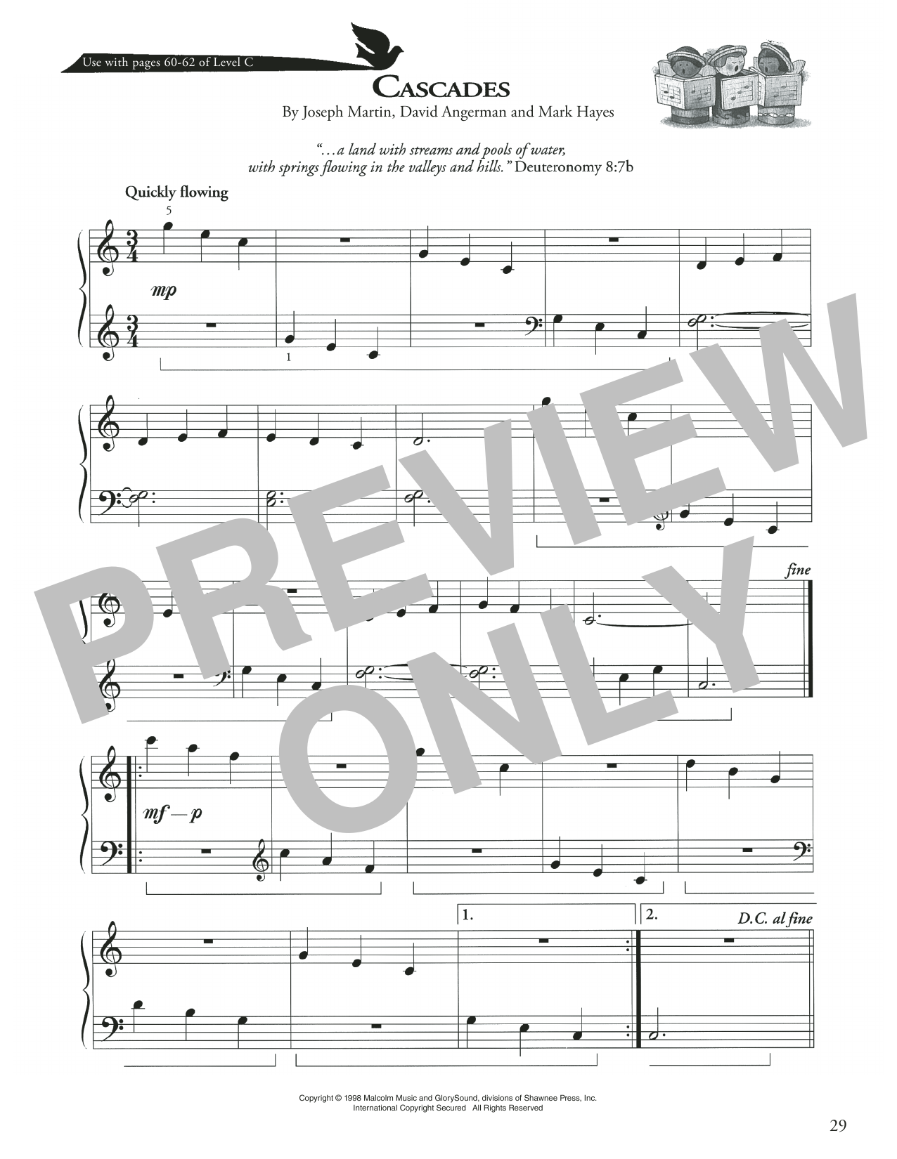 Download or print Joseph Martin, David Angerman and Mark Hayes Cascades sheet music, chords and digital score arranged for Piano Method. This Christian score includes 1 page(s).