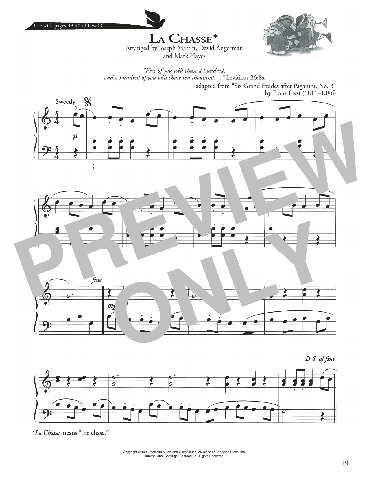 Download or print Joseph Martin, David Angerman and Mark Hayes La Chasse sheet music, chords and digital score arranged for Piano Method. This Christian score includes 1 page(s).