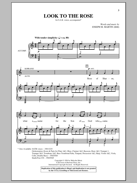 Download or print Joseph Martin Look To The Rose sheet music, chords and digital score arranged for SAB Choir. This Pop score includes 7 page(s).