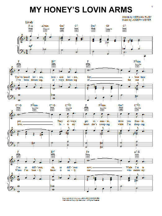 Download or print Herman Ruby My Honey's Loving Arms sheet music, chords and digital score arranged for Piano, Vocal & Guitar Chords (Right-Hand Melody). This Jazz score includes 4 page(s).