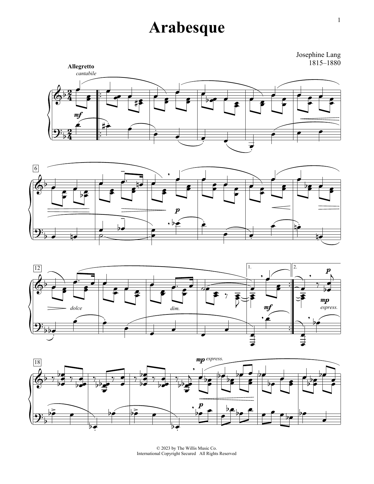 Download or print Josephine Lang Arabesque sheet music, chords and digital score arranged for Educational Piano. This Classical score includes 3 page(s).