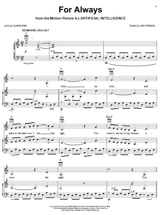 Download or print Josh Groban For Always sheet music, chords and digital score arranged for Piano, Vocal & Guitar Chords (Right-Hand Melody). This Film/TV score includes 7 page(s).