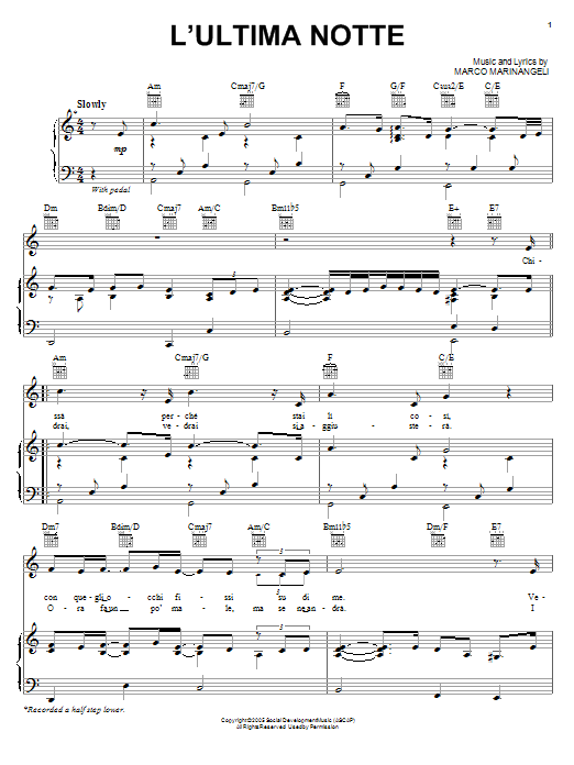 Download or print Josh Groban L'Ultima Notte sheet music, chords and digital score arranged for Piano, Vocal & Guitar Chords (Right-Hand Melody). This Pop score includes 6 page(s).