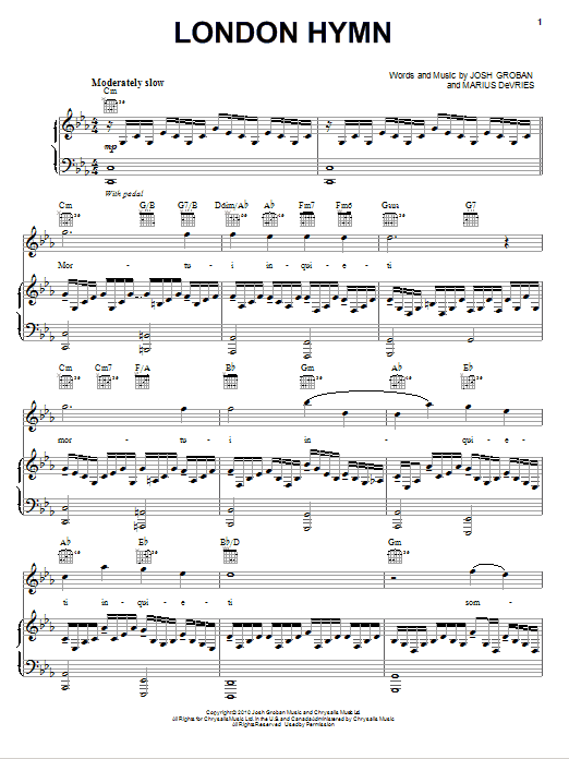 Download or print Josh Groban London Hymn sheet music, chords and digital score arranged for Easy Piano. This Classical score includes 3 page(s).