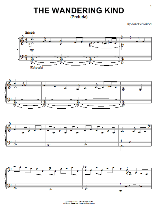 Download or print Josh Groban The Wandering Kind (Prelude) sheet music, chords and digital score arranged for Piano Solo. This Classical score includes 7 page(s).