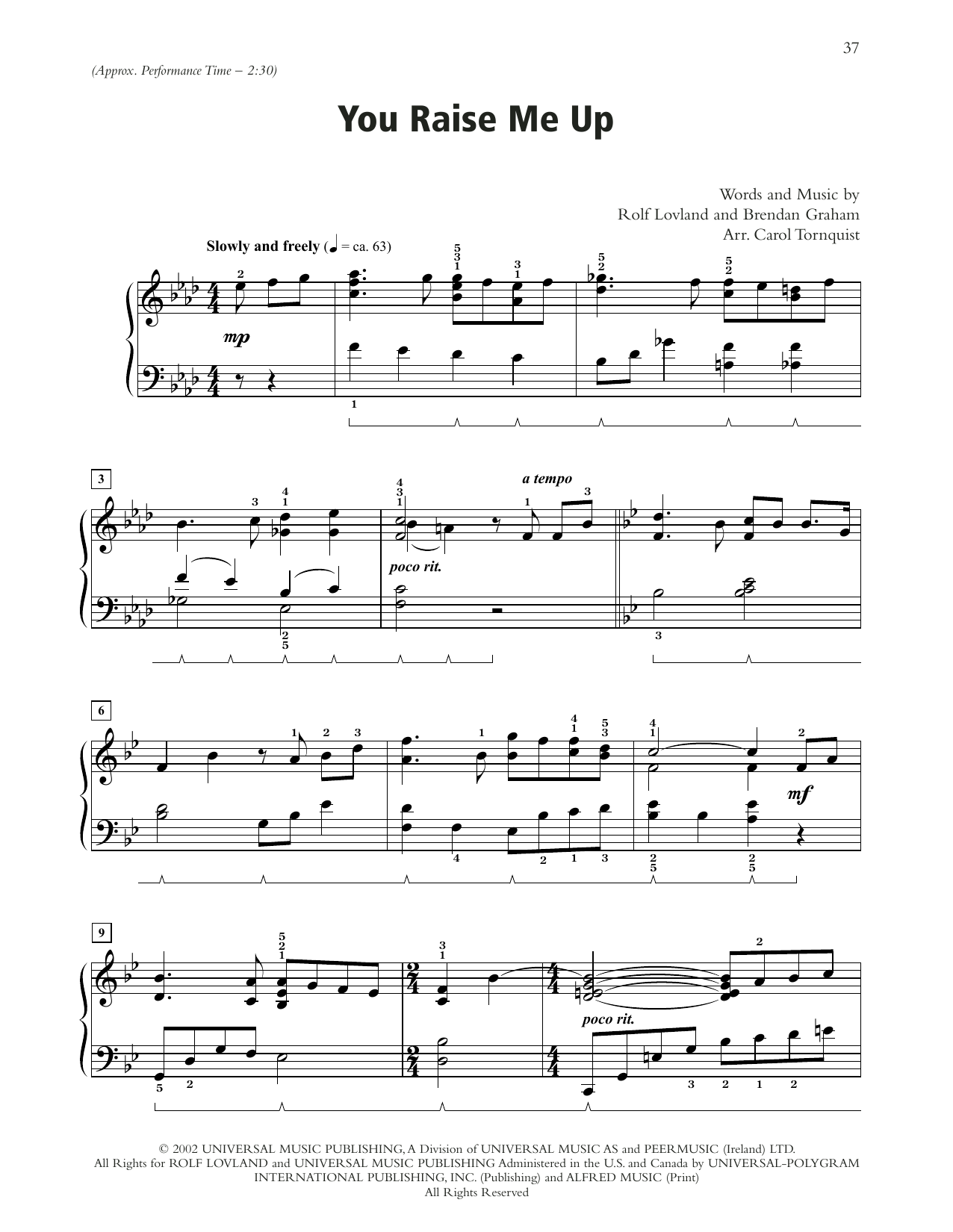 Quick facts You Raise Me Up (arr. Carol Tornquist) about digital sheet music