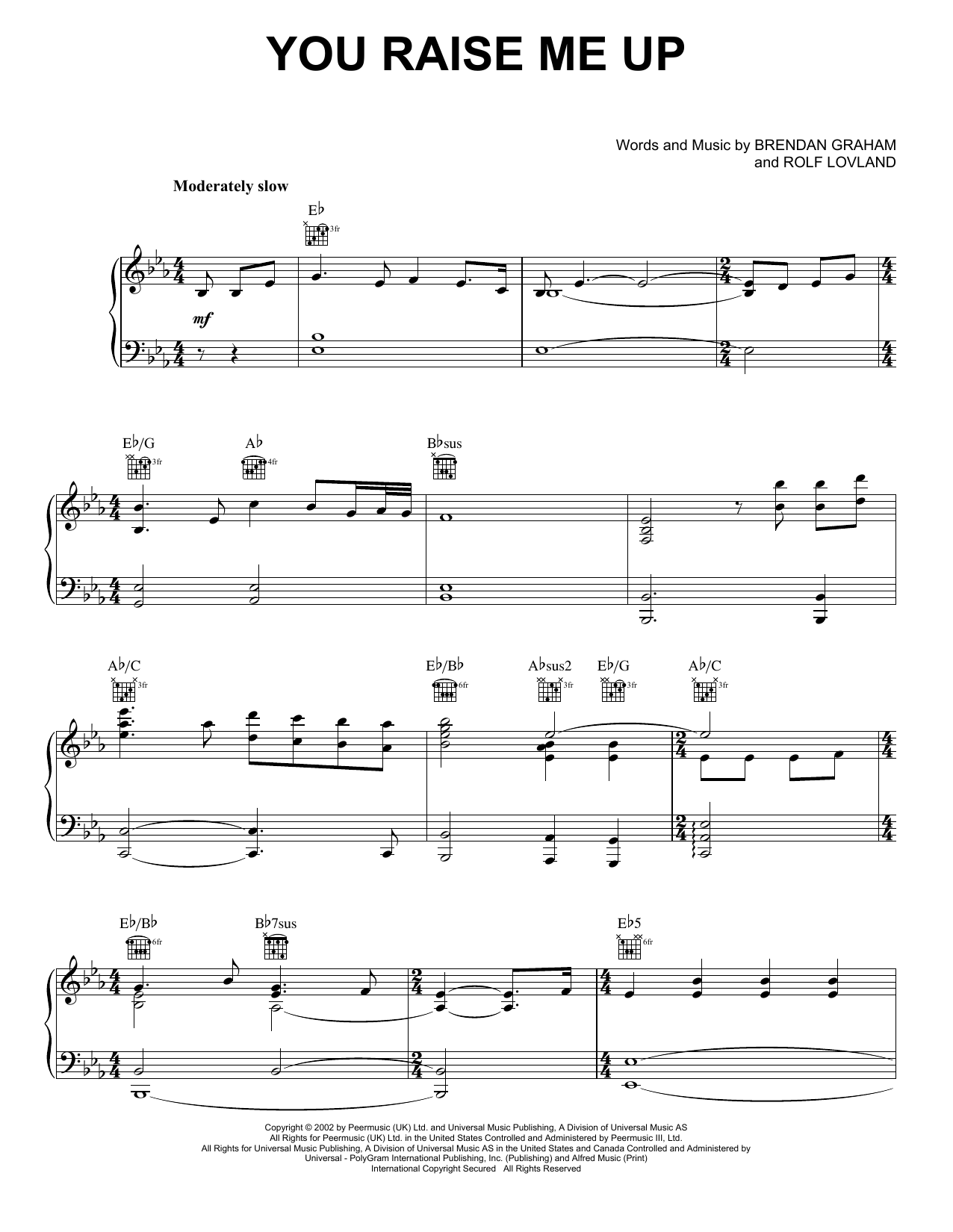 Download or print Josh Groban You Raise Me Up sheet music, chords and digital score arranged for Super Easy Piano. This Pop score includes 2 page(s).