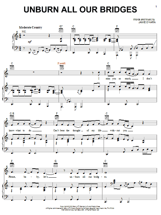 Download or print Josh Turner Unburn All Our Bridges sheet music, chords and digital score arranged for Piano, Vocal & Guitar Chords (Right-Hand Melody). This Country score includes 5 page(s).