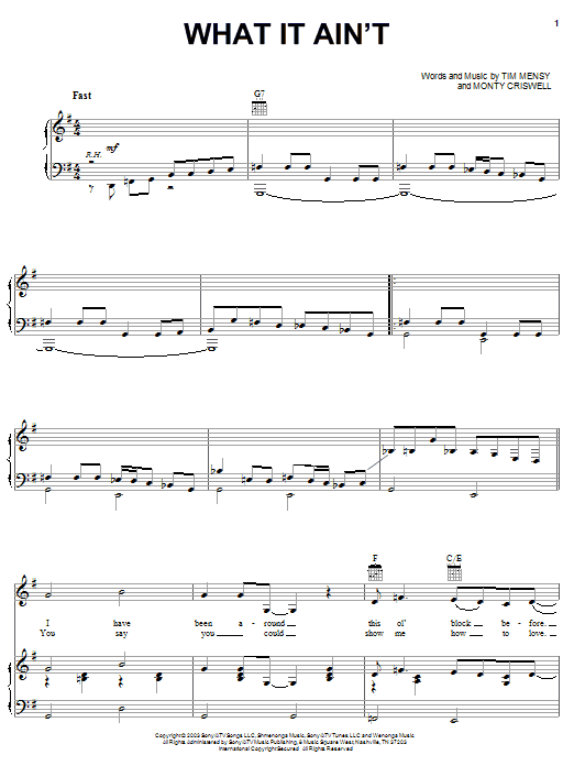 Download or print Josh Turner What It Ain't sheet music, chords and digital score arranged for Piano, Vocal & Guitar Chords (Right-Hand Melody). This Country score includes 8 page(s).