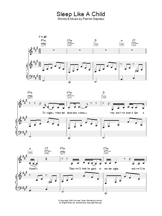 Download or print Joss Stone Sleep Like A Child sheet music, chords and digital score arranged for Piano, Vocal & Guitar Chords. This Pop score includes 7 page(s).