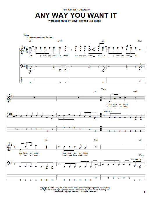Download or print Journey Any Way You Want It sheet music, chords and digital score arranged for Piano, Vocal & Guitar Chords (Right-Hand Melody). This Pop score includes 4 page(s).