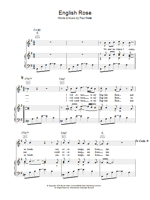 Download or print Journey South English Rose sheet music, chords and digital score arranged for Piano, Vocal & Guitar Chords. This Pop score includes 4 page(s).