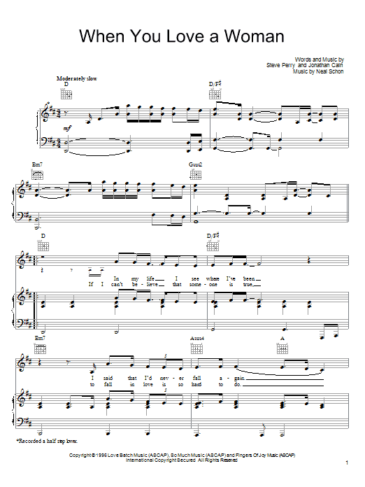 Download or print Journey When You Love A Woman sheet music, chords and digital score arranged for Easy Piano. This Pop score includes 4 page(s).
