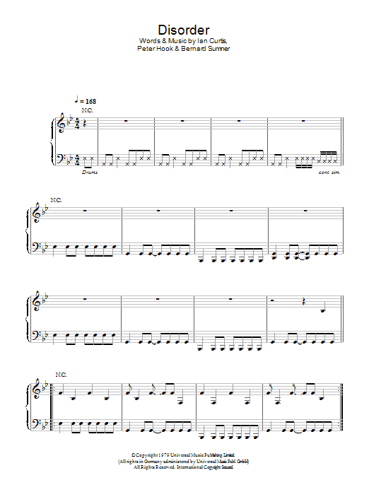 Download or print Joy Division Disorder sheet music, chords and digital score arranged for Piano, Vocal & Guitar Chords. This Punk score includes 6 page(s).