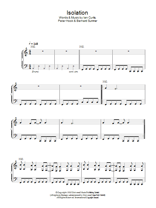 Download or print Joy Division Isolation sheet music, chords and digital score arranged for Piano, Vocal & Guitar Chords. This Punk score includes 5 page(s).