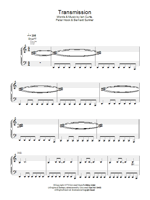 Download or print Joy Division Transmission sheet music, chords and digital score arranged for Piano, Vocal & Guitar Chords. This Punk score includes 7 page(s).