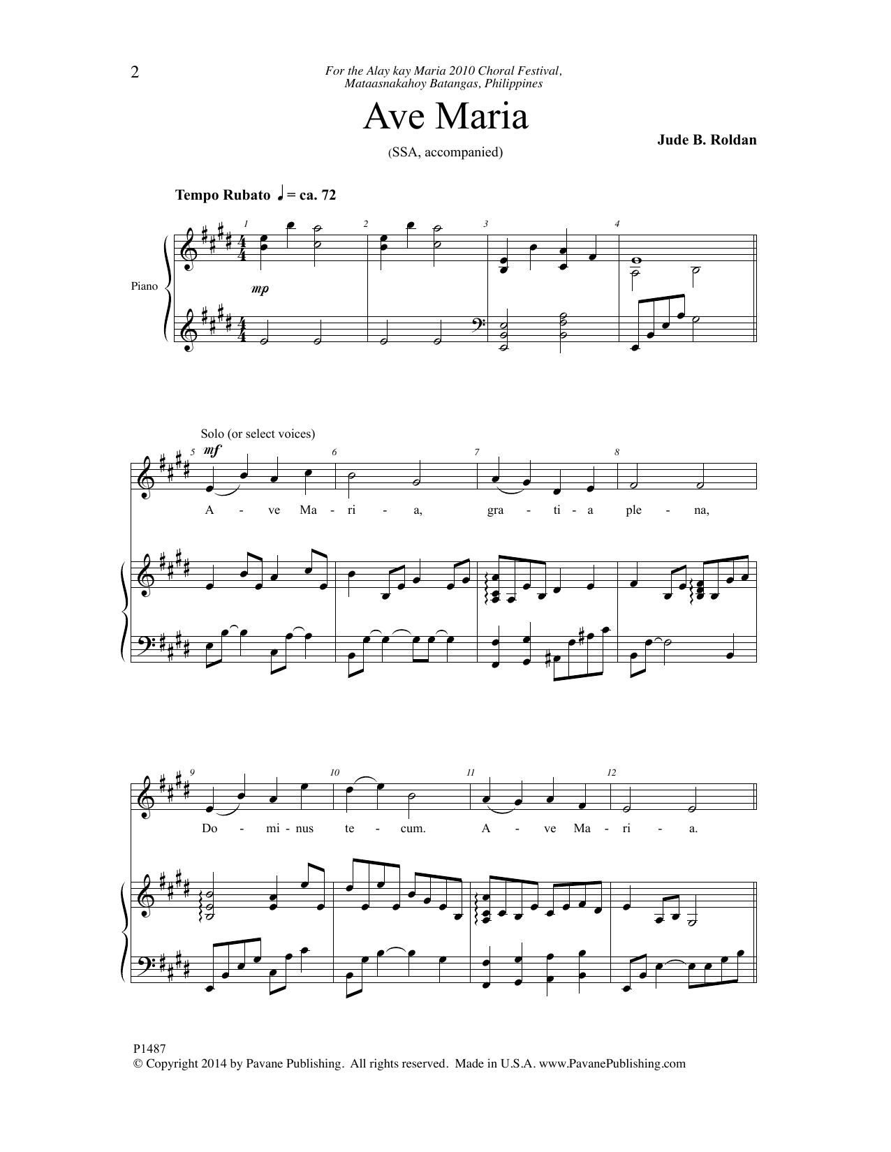 Download or print Jude B. Roldan Ave Maria sheet music, chords and digital score arranged for SSA Choir. This Concert score includes 7 page(s).