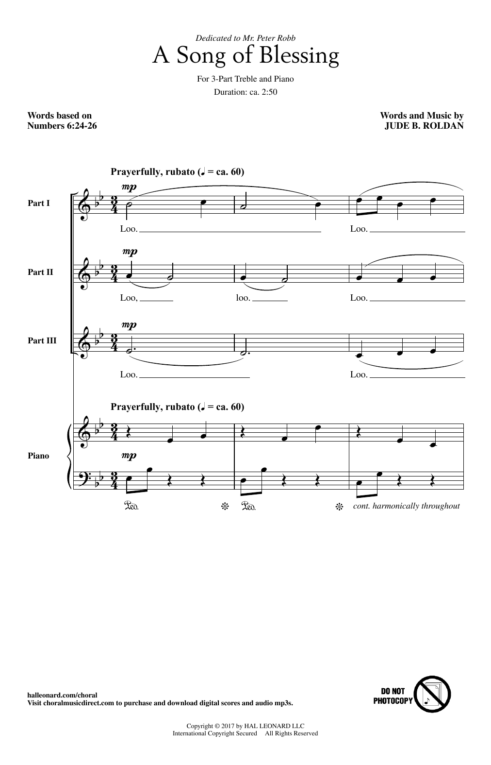 Download or print Jude Roldan A Song Of Blessing sheet music, chords and digital score arranged for 3-Part Treble Choir. This Concert score includes 9 page(s).