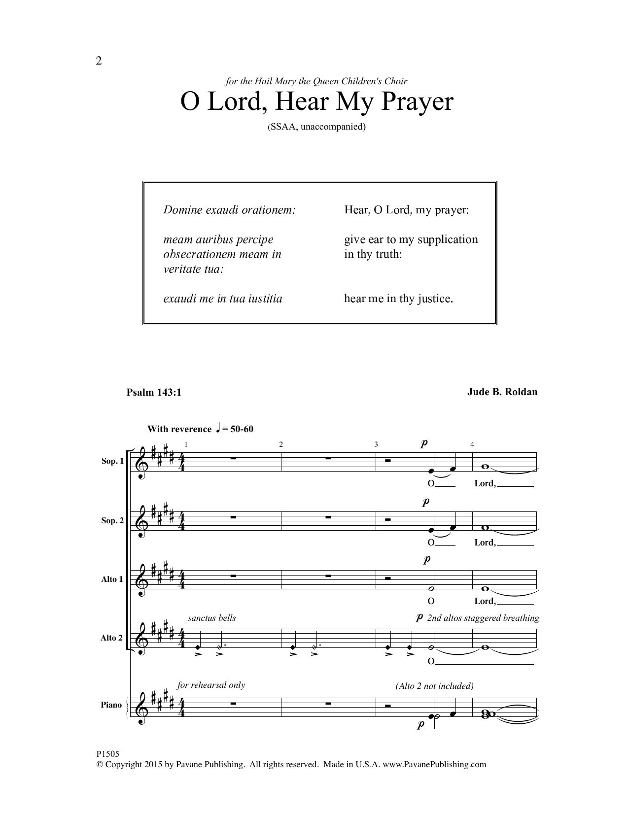 Download or print Jude Roldan O Lord, Hear My Prayer sheet music, chords and digital score arranged for SSAA Choir. This Concert score includes 7 page(s).