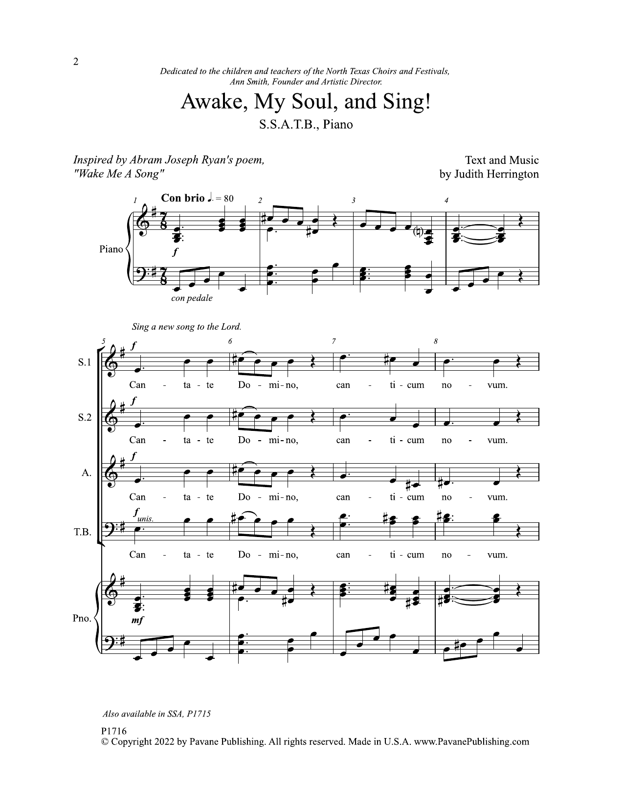 Download or print Judith Herrington Awake, My Soul, and Sing! sheet music, chords and digital score arranged for SSA Choir. This Concert score includes 10 page(s).