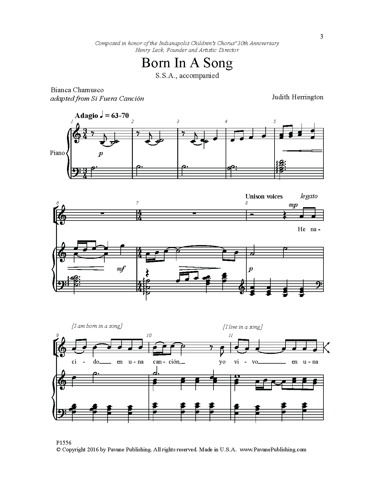 Download or print Judith Herrington Born in a Song sheet music, chords and digital score arranged for SSA Choir. This Children score includes 11 page(s).