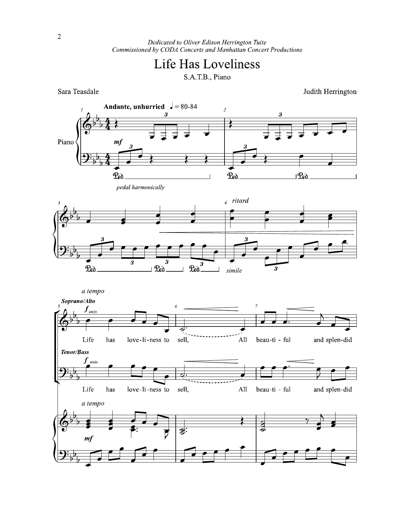 Download or print Judith Herrington Life Has Loveliness sheet music, chords and digital score arranged for 2-Part Choir. This Concert score includes 8 page(s).