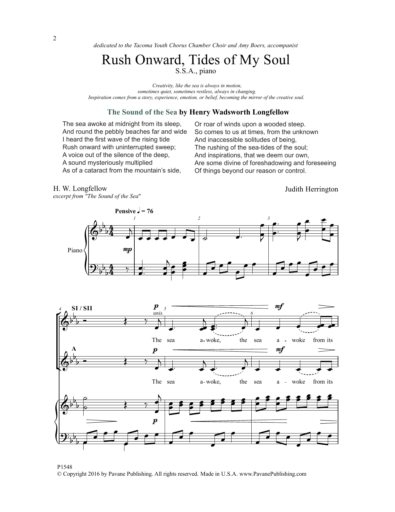 Download or print Judith Herrington Rush Onward, Tides of My Soul sheet music, chords and digital score arranged for SSA Choir. This Children score includes 7 page(s).