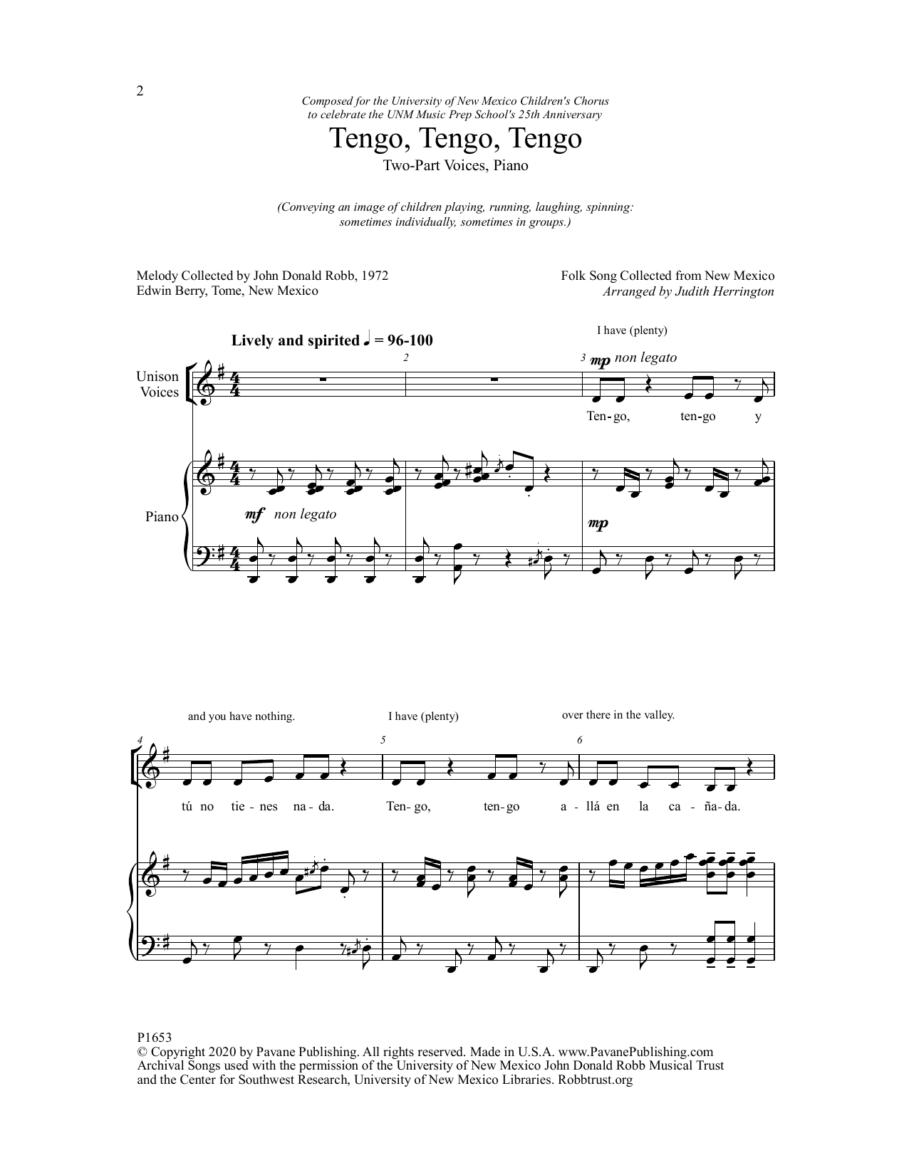 Download or print Judith Herrington Tengo, Tengo, Tengo sheet music, chords and digital score arranged for Choir. This Concert score includes 7 page(s).