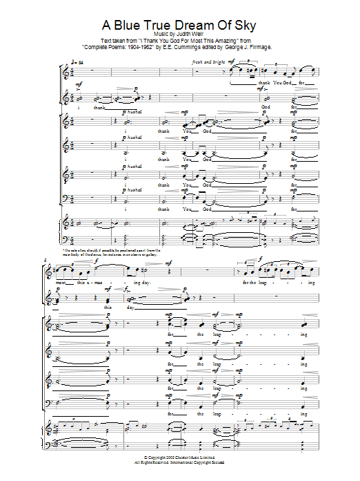 Download or print Judith Weir A Blue True Dream Of Sky sheet music, chords and digital score arranged for Choir. This Concert score includes 8 page(s).