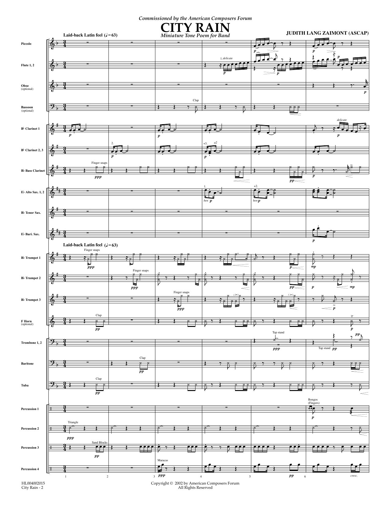 Download or print Judith Zaimont City Rain - Full Score sheet music, chords and digital score arranged for Concert Band. This Concert score includes 17 page(s).