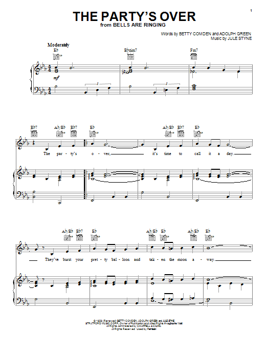 Download or print Judy Holliday The Party's Over sheet music, chords and digital score arranged for Piano, Vocal & Guitar Chords (Right-Hand Melody). This Musical/Show score includes 3 page(s).