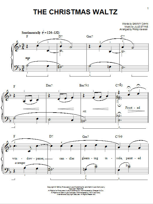 Download or print Sammy Cahn The Christmas Waltz [Jazz version] (arr. Phillip Keveren) sheet music, chords and digital score arranged for Easy Piano. This Christmas score includes 4 page(s).